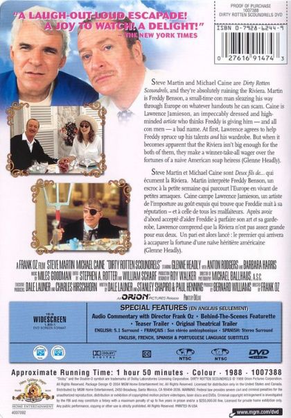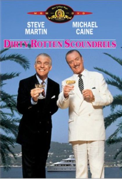 Steve Martin and Michael Caine are Dirty Rotten Scoundrels, and they're absolutely ruining the Riviera. Martin is Freddy Benson, a small-time con man sleazing his way through Europe on whatever handouts he can scam. Cain is Lawrence Jamieson, an impeccably dressed and high-minded artiste who thinks Freddy is giving him -- and all con men -- a bad name. At first, Larence agrees to help Freddy spruce up his talens and his wardrobe. But when it becomes apparent that the Riviera isn't big enough for the both of them, they make a winner-take-all wager over the fortunes of a naive American soap heiress (Glenne Headly).