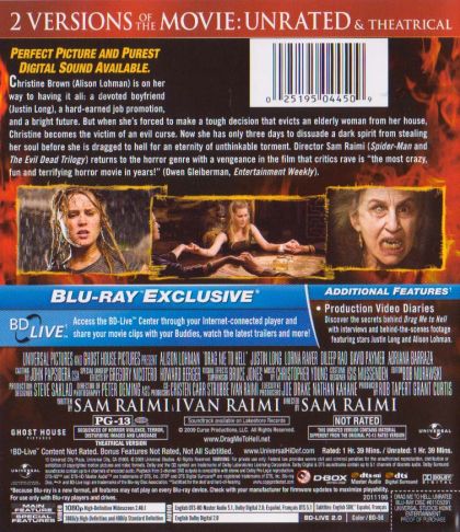 Christine Brown (Alison Lohman) is on her way to having it all: a devoted boyfriend (Justin Long), a hard-earned job promotion, and a bright future. But when she's forced to make a tough decision that evicts an elderly woman from her house, Christine becomes the victim of an evil curse. Now she has only three days to dissuade a dark spirit from stealing her soul before she is dragged to hell for an eternity of unthinkable torment. Director Sam Raimi (Spider-Man and The Evil Dead Trilogy) returns to the horror genre with a vengeance in the film that critics rave is "the most crazy, fun and terrifying horror movie in years!" (Owen Gleiberman, Entertainment Weekly)