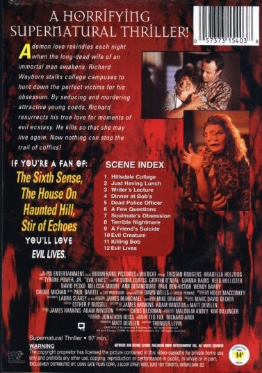 A Horrifying Supernatural Thriller!A demon love rekindles each night when the long-dead wife of an immortal man awakens. Richard Wayborn stalks college campuses to hunt down the perfect victims for his obsession. By seducing and murdering attractive young coeds, Richard resurrects his true love for moments of evil ecstasy. He kills so that she may live again. Now nothing can stop the trail of coffins!If you're a fan of:The Sixth Sense,The House On Haunted Hill,Stir Of Echoes...You'll love Evil Lives.