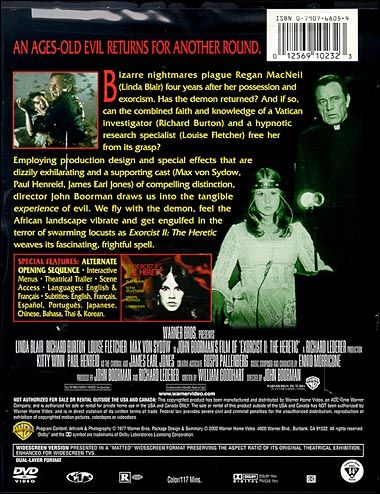 An Ages-Old Evil Returns For Another Round.Bizarre nightmares plague Regan MacNeil (Linda Blair) four years after her possession and exorcism. Has the demon returned? And if so, can the combined faith and knowledge of a Vatican investigator (Richard Burton) and a hypnotic research specialist (Louise Fletcher) free her from its grasp?Employing production design and special effects that are dizzily exhilarating and a supporting cast (Max von Sydow, Paul Henreid, James Earl Jones) of compelling distinction, director John Boorman draws us into the tangible experience of evil. We fly with the demon, feel the African landscape vibrate and get engulfed in the terror of swarming locusts as Exorcist II: The Heretic weaves its fascinating, frightful spell.