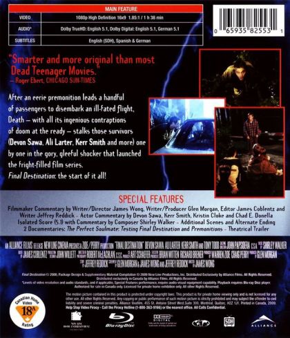 After an eerie premonition leads a handful of passengers to disembark an ill-fated flight, Death – with all its ingenious contraptions of doom at the ready – stalks those survivors (Devon Sawa, Ali Larter, Kerr Smith and more) one by one in the gory, gleeful shocker that launched the fright-filled film series.Final Destination: the start of it all!