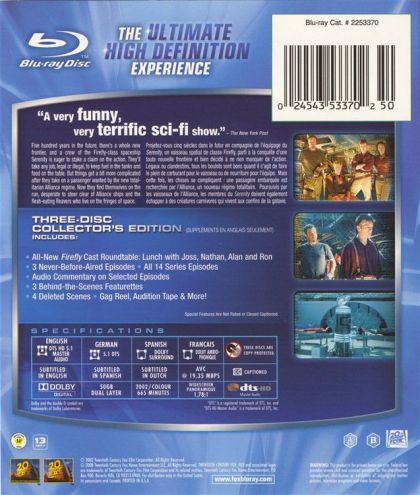 Five hundred years in the future, there's a whole new frontier, and a crew of the Firefly-class spaceship Serenity is eager to stake a claim on the action. They'll take any job, legal or illegal, to keep fuel in the tanks and food on the table. But things get a bit more complicated after they take on a passenger wanted by the new totalitarian Alliance regime. Now they find themselves on the run, desperate to steer clear of Alliance ships and the flesh-eating Reavers who live on the fringes of space.Projetez-vous cinq siècles dans le futur en compagnie de l'équipage du Serenity, un vaisseau spatial de classe Firefly, parti à la conquête d'une toute nouvelle frontière et bien décidé à ne rien manquer de l'action. Légaux ou clandestins, tous les boulots sont bons quand il s'agit de faire le plein de carburant pour le vaisseau ou de nourriture pour l'équipe. Mais cette fois, les choses se compliquent : une passagère embarquée est recherchée par l'Alliance, un nouveau régime totalitaire. Poursuivis par les vaisseaux de l'Alliance, les membres du Serenity doivent également échapper à des créatures carnivores oui vivent aux confins de la galaxie.