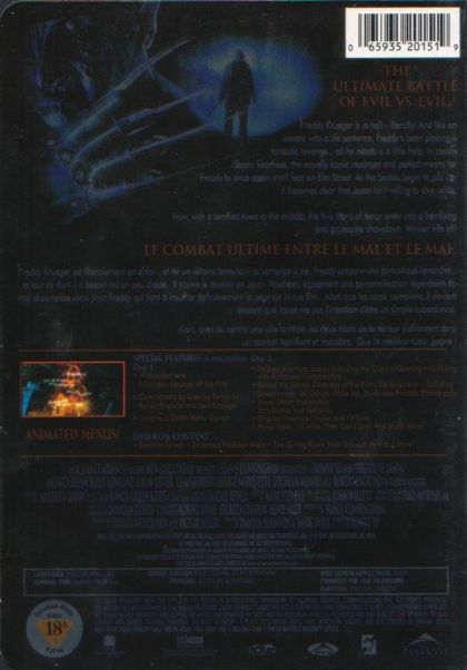 Freddy Krueger is in hell - literally! And like an inmate with a life sentence, Freddy's plotting a fantastic revenge... all he needs is a little help In comes Jason Voorhees, the equally iconic madman and perfect means for Freddy to once again instil fear on Elm Street. As the bodies begin to pile up, it becomes clear that Jason isn't willing to step aside. Now, with a terrified town in the middle, the two titans of terror enter into a horrifying and gruesome showdown. Winner kills all! Freddy Krueger est littéralement en enfer... et tel un détenu terminant sa sentence à vie Freddy prépare une fantastique revanche... et tout ce dont il a besoin est un peu d'aide. Il trouve le soutien en Jason Woorhees, également une personnification légendaire du mal et complice idéal pour Freddy qui tient à insuffler définitivement la peur sur la rue Elm. Alors que les corps s'empilent, il devient évident que Jason n'a pas l'intention d'être un simple subordonné.Alors, avec au centre une ville terrifiée, les deux titans de la terreur s'affrontent dans un combat horrifiant et macabre. Que le meilleur tueur gagne
