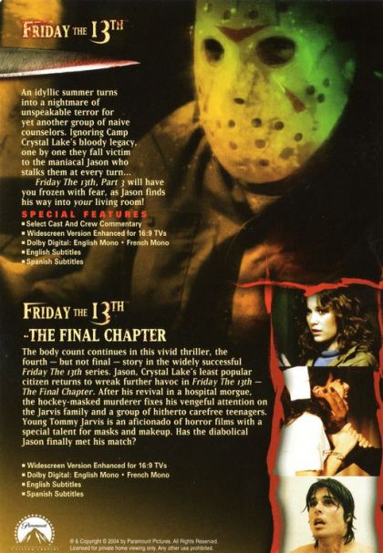 The body count continues in this vivid thriller, the fourth - but not final - story in the widely successful Friday The 13th series. Jason, Crystal Lake's least popular citizen returns to wreak further havoc in Friday The 13th - The Final Chapter. After his revival in a hospital morgue, the hockey-masked murderer fixes his vengeful attention on the Jarvis family and a group of hitherto carefree teenagers. Young Tommy Jarvis is an aficionado of horror films with a special talent for masks and makeup. Has the diabolical Jason finally met his match?
