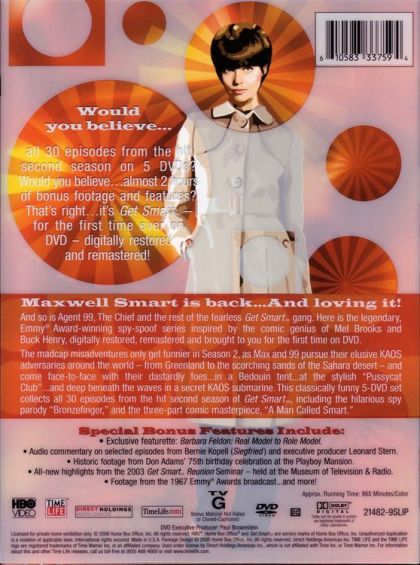 Maxwell Smart is back... and loving it! And so is Agent 99, the Chief and the rest of the fearless Get Smart gang. Here is the legendary, Emmy Award-winning spy-spoof series inspired by the genious of Mel Brooks and Buck Henry, digitally restored, remastered and brought to you for the first time on DVD.The madcap misadventures only get funnier in Season 2, as Max and 99 pursue their elusive KAOS adversaries around the world -- from Greenland to the scorching sands of the Sahara desert -- and come face-to-face with the dastrardly foes... in a Bedouin tent... at the stylish "Pussycast Club" .. and deep beneath the waves in a secret KAOS submarine. This classsically funny 5-DVD set collects all 30 episodes from the hit second season of Get Smart, including the hilarious spy parody "Bronzefinger", and the three-part comic masterpiece, "A Man Called Smart".