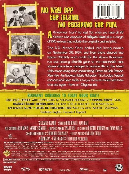 A three-hour tour? No way! Not when you have all 36 Season-One episodes of Gilligan's Island plus a cargo of DVD extras that include the originally unaired pilot. The S.S. Minnow first sailed into living rooms on September 26, 1964, and from there steered into legend. Certainly much credit for the show's three-year run and amazing afterlife goes to the remarkable cast whose characters managed to endure life on the island while never losing their comic timing. Bravo to Bob Denver, Alan Hale, Jim Backus, Natalie Schaefer, Tina Louise, Russel Johnson and Dawn Wells. It's a joy to be stranded with them time and again – here on Gilligan's Isle.