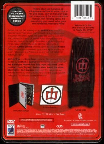 Believe it or not, he's walking on air! William Katt stars as mild-mannered high school teacher Ralph Hinkley, whose close encounter with aliens leaves him with a red super-power suit that only he can control. But when Ralph promptly loses the instruction manual, the safety of mankind is left in his fumbling hands. Now with the help of his attorney girlfriend Pam Davidson (Connie Selleca) and FBI agent Bill Maxwell (Robert Culp), the world's most unlikely flying crime fighter is ready for action. Who could it be? Believe it or not, he's THE GREATEST AMERICAN HERO! Michael Pare and Faye Grant co-star in this awesome `80s hit created by Stephen J. Cannell that featured such guest stars as Joe Mantegna, Markie Post, Bob Saget, Rick Dees, June Lockhart, David Paymer, Barbara Hale, André The Giant, Dixie Carter, Don Drysdale and more. This deluxe set also includes interviews, with cast and crew, and the unaired spinoff series pilot "The Greatest American Heroine".