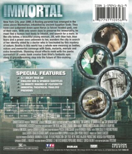New York City, year 2095. A Floating pyramid has emerged in the skies about Manhattan, inhabited by ancient Egyptian Gods. They have cast judgment down upon Horus (a falcon headed god), one of their own. With only seven days to preserve his immortality, he must find a human host body to inhabit, and search for a mate. In the city below, a beautiful young women, Jill, with blue hair, blue tears and a power even unknown to her, wanders the city in search of her identity aided by a doctor who is fascinated by this mystery of nature. Reality in this world has a whole new meaning as bodies, voices and memories converge with Gods, mutants, mortals and extra terrestrials. Stunning visual effects meld with the poetic surrealism of comic book creator Enki Bilal's fantastic epic story. A groundbreaking step into the future of film making.