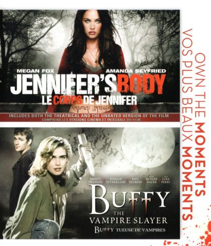Jennifer's Body:Sexy temptress Megan Fox is hotter than hell as Jennifer, a gorgeous, seductive cheerleader who takes evil to a whole new level after she’s possessed by a sinister demon. Steamy action and gore galore ensue as the male student body succumbs to Jennifer's insatiable appetite for human flesh. Now it’s up to her best friend (Amanda Seyfried) to stop Jennifer's reign of terror before it's too late!Buffy The Vampire Slayer:Blonde, bouncy Buffy (Kristy Swanson) is your typical high school cheerleader-- her goal is to "marry Christian Slater and die" and nothing gets in her way when it's time to shop. But all that changes when a strange man (Donald Sutherland) informs her she's been chosen by fate to kill vampires. With the help of a romantic rebel (Luke Perry), Buffy is soon spending school nights protecting L.A. from Lothos, the Vampire King (Rutger Hauer), his sidekick. Lefty (Paul Ruebens) and their determined gang of bloodsuckers. It's everything you'd expect from a teen queen in the Valley.