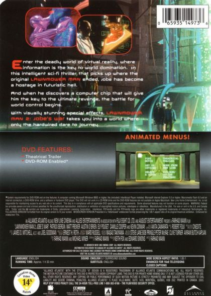 Enter the deadly world of virtual reality, where information is the key to world domination. In this intelligent sci-fi thriller that picks up where the original Lawnmower Man ended, Jobe has become a hostage in futuristic hell. And when he discovers a computer chip that will give him the key to the ultimate revenge, the battle for world control begins. With visually stunning special effects, Lawnmower Man 2: Jobe's War takes you into a world where only the hardwired dare to journey.