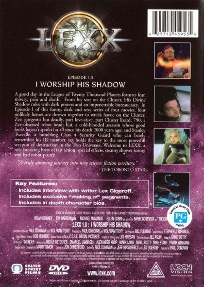 A good day in the League of Twenty Thousand Planets features fear, misery, pain and death. From his seat on the Cluster, His Divine Shadow rules with dark powers and an impenetrable bureaucracy. In Episode 1 of this funny, dark and sexy series of four movies, four unlikely heroes are thrown together to wreak havoc on the Cluster: Zev, gorgeous but deadly, part love-slave, part Cluster lizard; 790, a Zev-obsessed robot head; Kai, a cold-blooded assassin whose good looks haven't spoiled at all since his death 2000 years ago; and Stanley Tweedle, a bumbling Class 4 Security Guard who can barely remember his ID number, yet holds the key to the most powerful weapon of destruction in the Two Universes. Welcome to LEXX, a rule-breaking brew of fast action, special effects, steamy shower scenes and bad robot poetry.