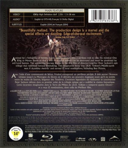 "Beautifully realized. The production design is a marvel and the special effects are dazzling. Edge-of-the-seat excitement." - Claudia Puig, USA TODAYAssisted by a Fellowship of heroes, Frodo Baggins plunges into a perilous trek to take the mystical One Ring to Mount Doom so that it and its magical powers can be destroyed and never be possessed by evil Lord Sauron. The astonishing journey begins in the first film of director/cowriter Peter Jackson's epic trilogy that redefined fantasy filmmaking. This imaginative foray into J.R.R. Tolkien's Middle-earth won 4 Academy Awards and earned 13 total nominations, including Best Picture.