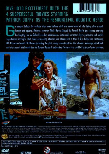 DIVE INTO EXCITEMENT WITH 4 SUSPENSEFUL MOVIES STARRING PATRICK DUFFY AS THE RESOURCEFUL AQUATIC HERO!Go deeper below the surface than ever before with the adventures of the being who is both human and aquatic. Atlantis survivor Mark Harris (played by Patrick Duffy just before starting his lengthy run on Dallas) breathes underwater, withstands extreme depth pressures and wields superhuman strength. And those astounding abilities are showcased in this 2—Disc Collection containing All 4 Feature-Length TV Movies (including the pilot, newly remastered for this release). Submerge with Mark and the crew of the Foundation for Oceanic Research submarine Cetacean in a world of science—fiction wonders.