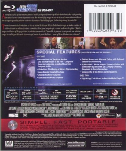 Attempting to pick up the shattered pieces of his life, a disgraced former cop (Kiefer Sutherland) takes a job guarding the ruins of a once-famous department store. But the terrifying images he sees in the store's ornate mirrors will send him on a pulse-pounding mission to unravel the secrets of the building's past... before they destroy this entire life!