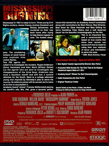 1964. When America was at war with itself.Mississippi in 1964 is ready to burn. Three young Civil Rights workers, James Chaney, Andrew Goodman and Mickey Schwerner, are murdered on their way back home after trying to help blacks register to vote. The bodies disappear. The smoldering embers of racial hatred now explode into violent flames.Two FBI agents are called in to investigate the murders. Rupert Anderson (Gene Hackman) and Alan Ward (Willem Dafoe) are the agents who are sent to investigate the disappearance of the three boys. Anderson was once a Southern sheriff and still has a cynical affection for the South. Ward is a college educated young man inspired by Kennedy’s plea to serve his country. He believes justice will be served, but is naïve as to how to accomplish it.Academy Award® winner* Frances McDormand playing the sheriff’s wife, Mrs. Pell, gives a dynamic performance that earned her an Academy Award®- nomination along with nominations for Best Picture, Best Director, Best Actor for Gene Hackman and Best Editing for Gerry Hambling. Peter Biziou won a well deserved Oscar® for his beautiful cinematography on the film. This is an important film, and a controversial film based on true events that show how racism can cause civil men to resort to using their own methods of terror and intimidation to solve the case.*1996: Best Actress, Fargo