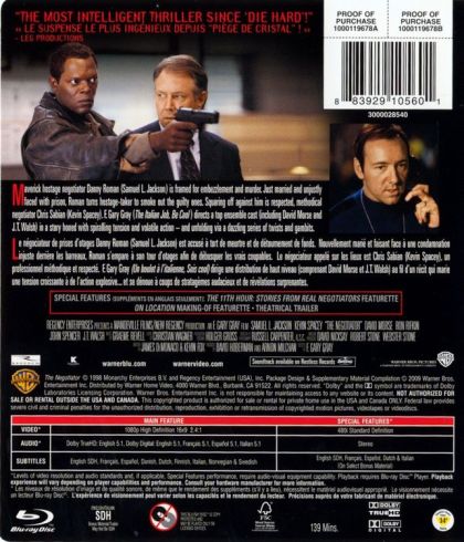 Maverick hostage negotiator Danny Roman (Samuel L. Jackson) is framed for embezzlement and murder. Newly married and unjustly faced with prison, Roman turns hostage-taker to smoke out the guilty ones. Squaring off against him is respected, methodical negotiator Chris Sabian (Kevin Spacey). F. Gary Gray (The Italian Job, Be Cool) directs a top ensemble cast (including David Morse and J.T. Walsh) in a story honed with spiraling tension and volatile action - and unfolding via a dazzling series of twists and gambits.