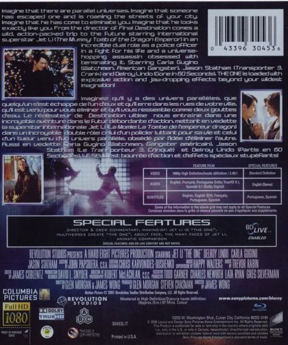 Imagine that there are parallel universes. Imagine that someone has escaped one and is roaming the streets of your city, imagine that he has come to eliminate you. Imagine that he looks exactly like you. From the director of Final Destination comes a wild, action-packed trip to the future starring international superstar Jet Li (The Mummy: tom of the Dragon Emperor) in an incredible dual role as a police oficer in a fight for his life and a universehopping assassin obsessed with terminating it. Starring Carla Gugino (Watchmen, American Gangster), Jason Stratham (Transporter 3, Crank) and Delroy Lindo (Gone in 60 Seconds). The One is loaded with explosive action and jaw-dropping effects beyond your wildest imagination!