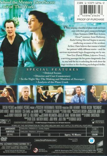 The Line Between This World And The Next Is About To Be Crossed.While helping a handful of plane crash survivors cope with their grief, young psychologist Claire Summers (2008 Best Actress, Oscar nominee Anne Hathaway, Rachel Getting Married) begins to uncover conflicting accounts of the accident. At first, Claire believes that trauma is behind her patients' wildly different stories - until the survivors mysteriously begin disappearing on by one. Now Eric (Patrick Wilson, Lakeview Terrace), a surviving passenger she has grown dangerously close to, may hold the key to unlocking the truth about the tragic incident in this shocking psychological thriller.