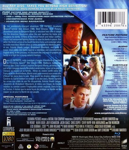 In the emotionally-charged adventure The Patriot, Academy Award-winner Mel Gibson (1995, Best Director, Best Picture, Braveheart) stars as Benjamin Martin, a reluctant hero who is swept into the American Revolution when the war reaches his home and threatens his family. A hero of the fierce French and Indian conflict, Martin had renounced fighting forever to raise his family in peace. But when the British arrive at his South Carolina home and endanger what he holds most dear, Martin takes up arms alongside his idealistic patriot son, Gabriel (Heath Ledger, Brokeback Mountain), and leads a brave rebel militia into battle against a relentless and overwhelming English army. In the process, he discovers the only way to protect his family is to fight for a young nation's freedom.
