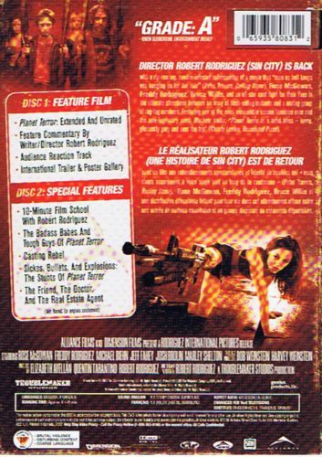 Director Robert Rodriguez (Sin City) is back with a rip-roaring, zombie-infested rollercoaster of a movie that "sure as hell keeps you hanging on for the ride" (Peter Travers, Rolling Stone). Rose McGowan, Freddy Rodriguez, Bruce Willis, and an all-star cast fight for their lives in the ultimate showdown between an army of flash-eating mutants and a motley group of rag-tag survivors. Featuring one of the most memorable screen heroines ever and the now legendary mock Machete trailer, "Planet Terror is a total blast - funny, gloriously gory and over the top" (Christy Lemire, Associated Press).LE RÉALISATEUR ROBERT RODRIGUEZ (UNE HISTOIRE DE SIN CITY) EST DE RETOUR avec un film aux rebondissements spectaculaires et infesté de zombies qui « vous rivera assurément à votre siège tout au long de la randonnée » (Peter Travers, Rolling Stone). Rose McGowan, Freddy Rodriguez, Bruce Willis et une distribution étincelante luttent pour leur vie dans cet affrontement ultime entre une armée de mutants cannibales et un groupe disparate de survivants dépenaillés. Mettant en vedette l’une des héroïnes les plus mémorables du grand écran et la bande-annonce parodique désormais légendaire de Machete, « Planète Terreur est un festival – drôle, sanglant à souhait et démesuré » (Christy Lemire, Associated Press).