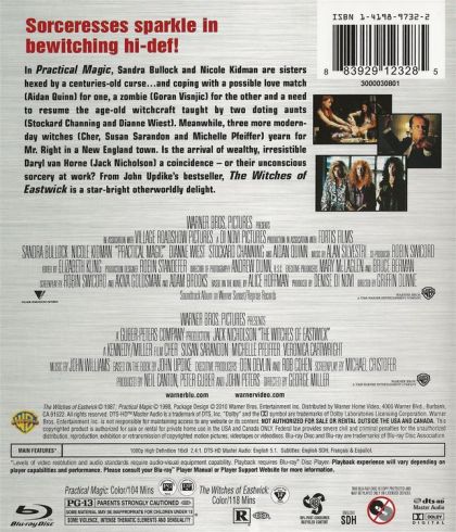 In Practical Magic, Sandra Bullock and Nicole Kidman are sisters hexed by a centuries-old curse... and coping with a possible love match (Aidan Quinn) for one, a zombie (Goran Visnjic), for the other and a need to resume the age-old witchcraft taught by two doting aunts (Stockard Channing and Diane Wiest). Meanwhile, three more modernday witches (Cher, Susan Sarandon and Michelle Pfeiffer) yearn for Mr. Right in a New England town. Is the arrival of wealthy, irresistible Daryl van Horne (Jack Nicholson) a coincidence - or their unconscious sorcery at work? From John Updike's bestseller, The Witches of Eastwick is a star-bright otherwordly delight.