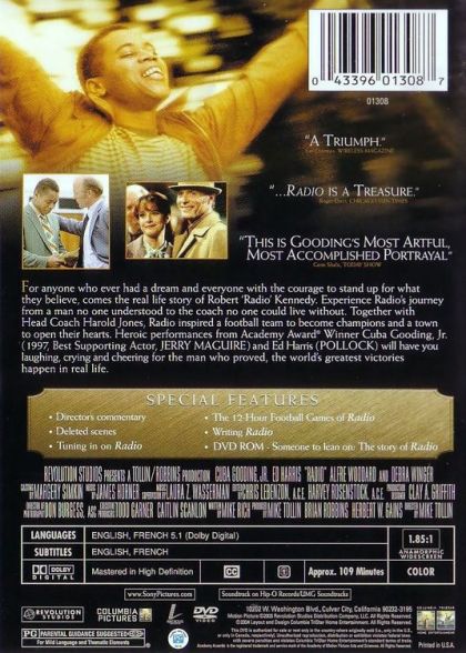 For anyone who ever had a dream and everyone with the courage to stand up for what they believe, comes the real life story of Robert "Radio" Kennedy. Experience Radio's journey from a man no one understood to the coach no one could live without. Together with Head Coach Harold Jones, Radio inspired a football team to become champions and a town to open their hearts. Heroic performances from Academy Award Winner Cuba Gooding, Jr. (1997, Best Supporting Actor, JERRY MAGUIRE) and Ed Harris (POLLOCK) will have you laughing, crying and cheering for the man who proved, the world's greatest victories happen in real life.