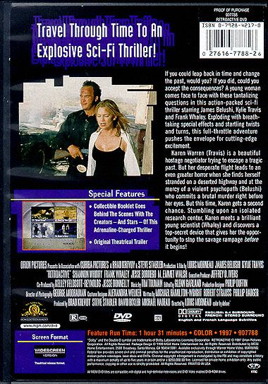 If you could leap back in time and change the past, would you? If you did, could you accept the consequences? A young woman comes face to face with these tantalizing questions in this action-packed sci-fi thriller starring James Belushi, Kylie Travis and Frank Whaley. Exploding with breathtaking special effects and startling twists and turns, this full-throttle adventure pushes the envelope for cutting-edge excitement. Karen Warren (Travis) is a beautiful hostage negotiator trying to escape a tragic past. But her desperate flight leads to an even greater horror when she finds herselfstranded on a deserted highway and at the mercy of a violent psychopath (Belushi) who commits a brutal murder right before her eyes. But this time, Karen gets a second chance. Stumbling upon an isolated research center, Karen meets a brilliant young scientist (Whaley) and discovers a top-secret device that gives her the opportunity to stop the savage rampage before it begins!