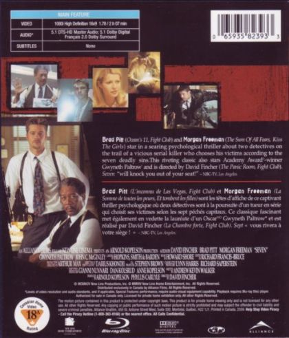 Brad Pitt (Ocean's 11, Fight Club) and Morgan Freeman (The Sum Of All Fears, Kiss The Girls) star in a searing psychological thriller about two detectives on the trail of a vicious serial killer who chooses his victims according to the seven deadly sins. This riveting classic also stars Academy Award®-winner Gwyneth Paltrow and is directed by David Fincher (The Panic Room, Fight Club). Seven "will knock you out of your seat!" - NBC-TV, Los Angeles.