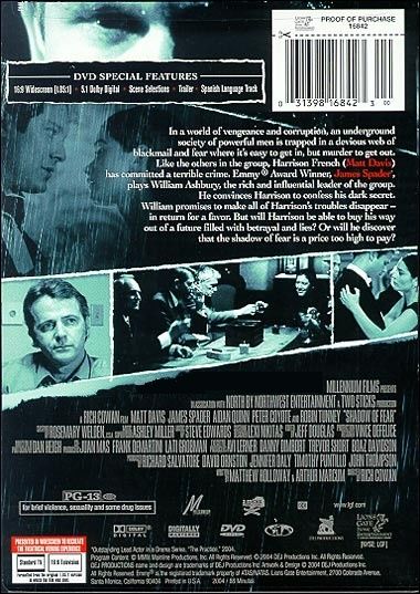 Tell Someone Your Darkest Secret And They Own You.In a world of vengeance and corruption, an underground society of powerful men is trapped in a devious web of blackmail and fear where it's easy to get in, but murder to get out. Like the others in the group, Harrison French (Matt Davis) has committed a terrible crime. Emmy Award Winner, James Spader, plays William Ashbury, the rich and influential leader of the group. He convinces Harrison to confess his dark secret. William promises to make all of Harrison's troubles disappear - in return for a favor. But will Harrison be able to buy his way out of a future filled with betrayal and lies? Or will he discover that the shadow of fear is a price too high to pay?