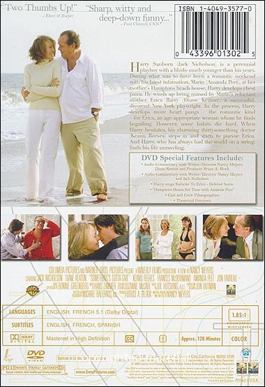 Harry Sanborn (Jack Nicholson) is a perennial playboy with a libido much younger than his years. During a romantic weekend with his latest infatuation, Marin (Amanda Peet), at her mother's Hamptons beach house, Harry develops chest pains. He winds up being nursed by Marin's reluctant mother, Erica Barry (Diane Keaton)-a successful, divorced New York playwright. In the process, Harry develops more heart pangs-the romantic kind-for Erica, an age appropriate woman whom he finds beguiling. When Harry hesitates, his charming thirty-something doctor (Keanu Reeves) steps in and starts to pursue Erica. And Harry, who has always had the world on a string, finds his life unraveling.