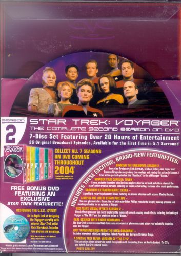 The Complete Second Season oniDVDDisc 1Episode 120 - The 37'sEpisode 121 - InitiationsEpisode 117 - ProjectionsEpisode 118 - ElogiumDisc 2Episode 122 - Non SequiturEpisode 119 - TwistedEpisode 123 - ParturitionEpisode 124 - Persistence of VisionDisc 3Episode 125 - TattooEpisode 126 - Cold FireEpisode 127 - ManeuversEpisode 128 - ResistanceDisc 4Episode 129 - PrototypeEpisode 131 - AlliancesEpisode 132 - ThresholdEpisode 133 - MeldDisc 5Episode 134 - DreadnoughtEpisode 130 - Death WishEpisode 136 - LifesignsEpisode 135 - InvestigationsDisc 6Episode 137 - DeadlockEpisode 138 - InnocenceEpisode 139 - The ThawEpisode 140 - TuvixDisc 7Episode 141 - ResolutionsEpisode 142 - Basics, Part I