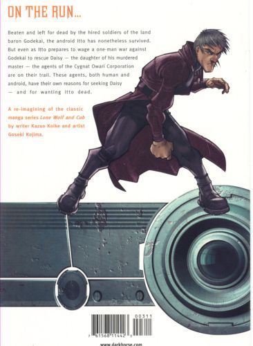 A virus incubating in young Daisy Ogami's blood may hold the key to saving the world-or destroying it. The Cygnat Owari corporation wants her secret-no matter what it may be, and no matter what the cost in money or lives. Daisy's only protector is Itto-an android bodyguard falsely accused of killing her father. For over a year, Itto and Daisy have managed to stay one jump ahead of the assassins on their trail. But now the agents of Cygnat Owari have captured Itto, hoping to extract from him through torture Daisy's hiding place. Only Itto's captors have not reckoned with the fallout of their own actions: an operative whom they fired has located Daisy, and is setting the stage for Itto to take his revenge on his former employers A ground-up re-imagining of the original Lone Wolf and Cub manga, this series is being done in association with Kazuo Koike, the writer and co-creator of Lone Wolf and Cub.