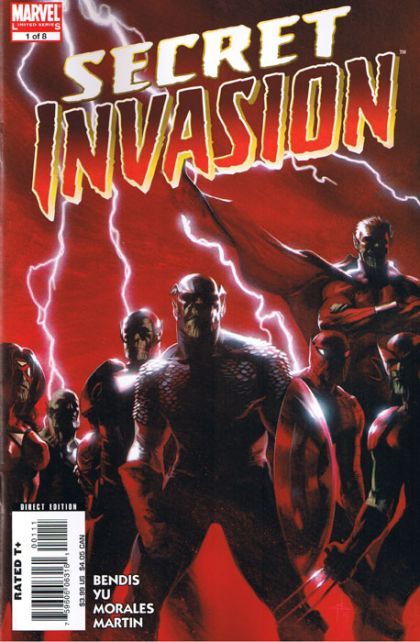 The Skrull agenda that has been hinted at for months is put into top gear. A lone Skrull craft lands in the Savage Land, and both teams of Avengers head in to investigate, despite their lack of trust for each other. The find the installation they were captured in back from New Avengers #5, in much worse repair than it used to be. They also find the Skrull craft, but before they can tear it open, a wave of attacks from Skrull agents strike down most human resistance, often accompanied by the mantra "He Loves You." Iron Man is felled by a virus, the orbiting S.W.O.R.D. installation is destroyed, the Baxter Building is sucked into the Negative Zone, Reed Richards is seriously wounded, and a spacecraft full of what appear to be heroes in old school costumes cracks open.