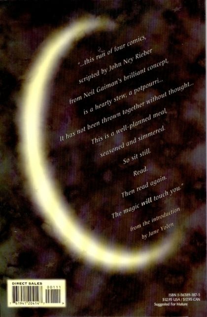 Written by John Ney Rieber; Art by Gary Amaro and Peter Gross Tim Hunter, destined to become Earth's greatest sorcerer, defends the realm of Faerie from the deadly manticore while trying to maintain a normal childhood life. Is his real father the one-armed drunk in the front room or is he the man who can turn into a hawk? Is his mother dead and buried or is she Titania, Queen of Faerie? Plus Death herself weighs in on the subject of identity. This collection reprints issues #1-4 of THE BOOKS OF MAGIC ongoing series.