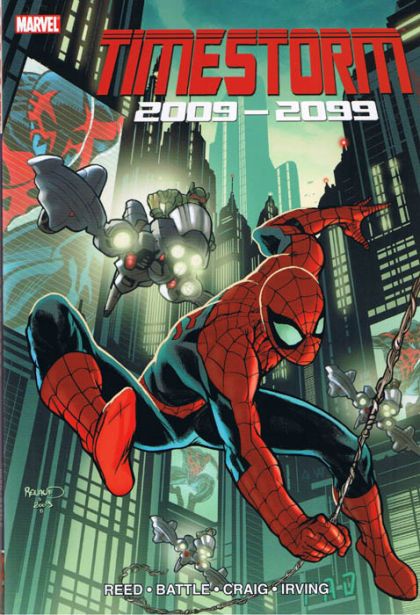 The Punisher for 2099 has traveled to our time. He's blasted Spider-Man and Wolverine forward in time. Now time is being shredded and reformed and that the past could just become the present.