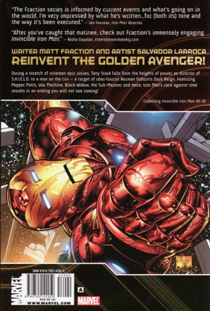 Written by MATT FRACTION Penciled by SALVADOR LARROCA Cover by SALVADOR LARROCA Iron Man 2.0 is here - and Tony Stark isn't the one who made him! Ezekiel Stane is on the scene and fixated on avenging the death of his father, Obadiah. Every bit as ruthless and ten times as smart, the younger Stane is all five of Stark's nightmares rolled into one - and his perversion of Stark's technology into a weapon capable of slaying hundreds of innocents at a time starts the clock ticking on a chess game Iron Man must win! Then, the manhunt is on! As director of S.H.I.E.L.D., Tony Stark had sole possession of a database that contained the secret identities of every registered hero in the country. But now, S.H.I.E.L.D. is no more. A casualty in the aftermath of the Skrull's Secret Invasion, the international peacekeeping organization has been replaced by the Dark Reign of Norman Osborn and his newly conceived H.A.M.M.E.R. - a less kind, decidedly less gentle remaking of the legendary security force founded by Nick Fury. With Tony Stark in disgrace and on the run, the orders have come down from the highest level to every mercenary, mobster and Osborn minion: 'Bring me the head of Tony Stark!' Collecting INVINCIBLE IRON MAN #1-19. 344 PGS./Rated A ?$39.99