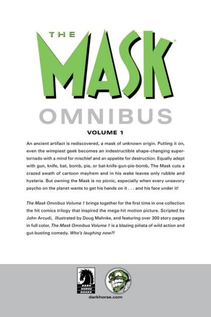 John Arcudi (W) and Doug Mahnke (A) On sale Aug 13 FC, 376 pages $24.95 TPB, 6' x 9' It has all the makings of an epic adventure: an ancient artifact is rediscovered; a mask of unknown origins, with unforeseen power and magic. But who knew that after donning this mask even the wimpiest geek would become an indestructible shape-changing super-tornado with a mind for mischief and an appetite for destruction? Equally adept with gun, knife, bat, bomb, pie, or bat-knife-gun-pie-bomb, a geek turned super-freak, The Mask cuts a crazed swath of cartoon mayhem! ? This original comic trilogy inspired the hit film The Mask, which has grossed over $450 million worldwide since its release in 1994. ? Collects The Mask, The Mask Returns, The Mask Strikes Back (long out-of- print) for the first time in one volume.