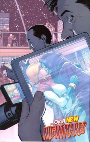 Mr. Terrific and Power Girl reunited? But if Michael Holt is still on Earth 2, who is kissing Karen Starr?