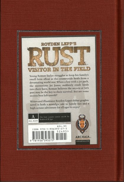 (W/A) Royden Lepp Rust is a high-octane, all-ages adventure set in the American heartland. Life on the Taylor family farm was difficult enough before Jet Jones crashes into the barn, chased by a giant decommissioned war robot! Oldest son Roman Taylor struggles to keep his family's small farm afloat as the heartland heals from a devastating world war. While the rest of his family may not trust the mysterious boy with the jetpack, Roman believes the secrets of Jet's past may be the key to their survival. But are some secrets best left untold? This is the next, great Archaia All Ages book!
