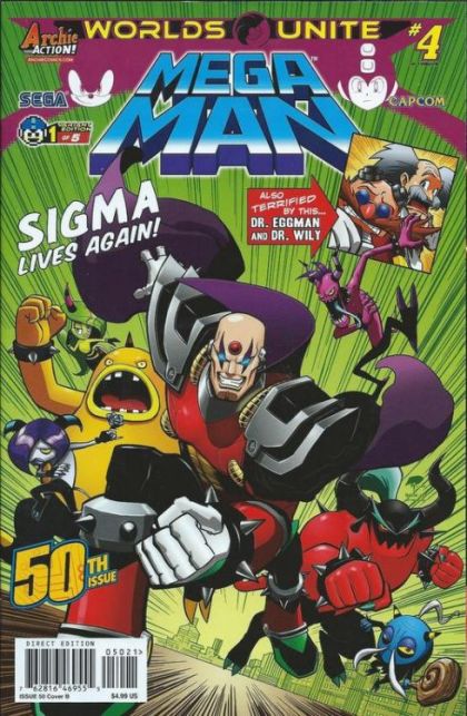 Celebrate 50 issues of Mega Man with the latest chapter in the globe-smashing SONIC/MEGA MAN crossover event! 'Worlds Unite' Part Four: Act One comes to its mind-blowing conclusion! Sigma's plan reaches its first stage, and the worlds of Sonic and Mega Man have fused! It's definitely going to take more than one hero to stop the threat from the future-maybe even ten! Sonic, Mega Man, X, Sticks, the Freedom Fighters, Robot Masters and Maverick Hunters-UNITE! PLUS: Stick around for a special bonus anniversary story as Mega Man and X meet for the first time! Featuring a wrap-around cover from the legendary Patrick 'SPAZ' Spaziante! PLUS 5 variant covers from Edwin Huang, Irvin Rodriguez, Patrick Thomas Parnell, Roger & Idalia Robinson and part 4 of the epic 12-part connecting variant cover series by artist Ben Bates!