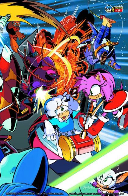 Celebrate 50 issues of Mega Man with the latest chapter in the globe-smashing SONIC/MEGA MAN crossover event! 'Worlds Unite' Part Four: Act One comes to its mind-blowing conclusion! Sigma's plan reaches its first stage, and the worlds of Sonic and Mega Man have fused! It's definitely going to take more than one hero to stop the threat from the future-maybe even ten! Sonic, Mega Man, X, Sticks, the Freedom Fighters, Robot Masters and Maverick Hunters-UNITE! PLUS: Stick around for a special bonus anniversary story as Mega Man and X meet for the first time! Featuring a wrap-around cover from the legendary Patrick 'SPAZ' Spaziante! PLUS 5 variant covers from Edwin Huang, Irvin Rodriguez, Patrick Thomas Parnell, Roger & Idalia Robinson and part 4 of the epic 12-part connecting variant cover series by artist Ben Bates!