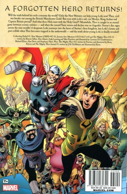A forgotten hero returns - but will the truth behind his exile consume the world? Only the New Mutants can help young Loki now! Then, civil war breaks out among the British Manchester Gods! But even with Loki's aid, can Merlyn, King Arthur and Captain Britain prevail? And what does Hela want with the Holy Grail?! Meanwhile, Thor is caught in an eternal game between cosmic entities - and when the cursed Vanir return and declare war on Asgardia, Surtur's fire rages across the nine worlds! A desperate Loki journeys into the heart of Surtur's fiery kingdom, but Loki's future and past collide when Thor becomes trapped in the underworld- and the truth about young Loki is finally revealed! Collecting EXILED #1, NEW MUTANTS (2009) #42-43, JOURNEY INTO MYSTERY (1952) #637-645, and THE MIGHTY THOR #18-22 and ANNUAL #1.