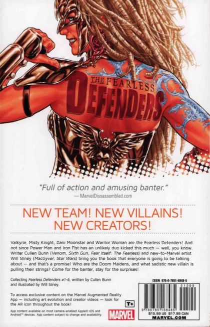 New team! New villains! New creators! Valkyrie and Misty Knight are the Fearless Defenders, and not since Power Man and Iron Fist has an unlikely duo kicked this much - well, you know. Writer Cullen Bunn (VENOM, Sixth Gun, FEAR ITSELF: THE FEARLESS) and new-to-Marvel artist Will Sliney (MacGyver, Star Wars) bring you the book that everyone is going to be talking about - and that's a promise! Collecting FEARLESS DEFENDERS #1-6.