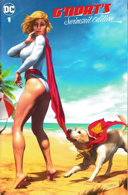 FUN IN THE SUN STARRING...G'NORT! Art by Paul Pelletier, Nicola Scott, Mikel Janin, Jeff Dekal, Daniel Sampere, Gleb Melnikov, Derrick Chew, Stanley Artgerm Lau, Emanuela Lupacchino, Joelle Jones, Megan Huang, Terry Dodson, Babs Tarr, Pete Woods, Joe Quinones, Helene Lenoble, Otto Schimdt, Michael Allred, Sweeney Boo, David Talaski, Jenny Frison, and others! You may know G'nort as the bumbling Green Lantern who protects Space Sector 68. Then again, you may not know G'nort at all. Whatever the case, get ready to see him in his newest role as host and proprietor of this very special swimsuit edition comic! Join our favorite fuzzball as he showcases some of our best swimsuit covers and our most swim-tacular stories! From the Flash in a Speed Force Speedo to Batman in a bat(hing) suit, this very special one-shot is summer fun from (bikini) top to (bikini) bottom. Also collecting some of the steamiest swimsuit covers from DC's best talent, all in one place for the very first time!