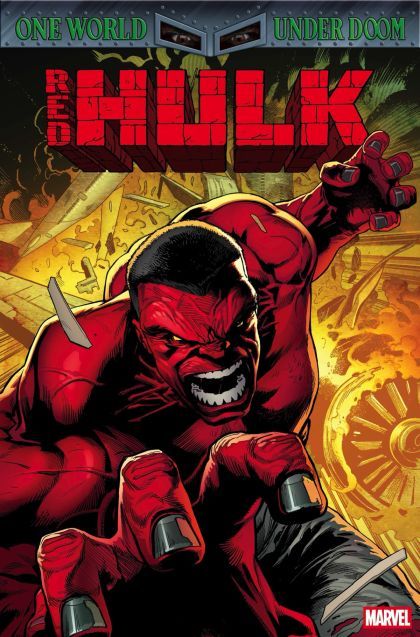 RED HULK RAGES INTO ONE WORLD UNDER DOOM! THUNDERBOLT ROSS - in a cell deep below the ground - is a prisoner of DOCTOR DOOM And he is not alone. Brilliant military, criminal and political minds have been gathered against their will in a prison complex that serves as a 'THINK TANK' to help carry out Doom's plan for global domination. But the RED HULK has other plans! Guest starring MACHINE MAN and DEATHLOK! Rated T+