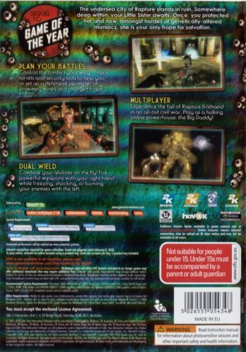 Multiplayer in BioShock 2 provides a rich prequel experience that expands the origins of the BioShock fiction. Set during the fall of Rapture, players assume the role of a Plasmid test subject for Sinclair Solutions, a premier provider of Plasmids and Tonics in the underwater city of Rapture that was first explored in the original BioShock. Players will need to use all the elements of the BioShock toolset to survive as the full depth of the BioShock experience is refined and transformed into a unique multiplayer experience that can only be found in Rapture.
