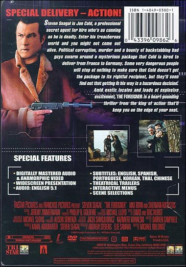 There must be an audience for Steven Seagal movies, but it's hard to imagine who would actually want to watch a movie like The Foreigner. Seagal, bloated and puffy-faced, plays a super-professional operative of some kind, who on this occasion is supposed to deliver a package from someone (it doesn't matter who) to a super-rich industrialist. The industrialist's beautiful blond wife tries to intercept it, Seagal prevents this, then decides to help her out, and lots and lots of people get killed in impractical and implausible ways. Almost every scene is so full of "mysterious" dialogue as to be incomprehensible. The Foreigner tries to create a veil of cool action attitude to disguise the lack of cool and the lack of action. Seagal mumbles. Seagal frowns. No one shoots Seagal, despite numerous opportunities to do so and no reason not to. Why was this movie made? --Bret Fetzer