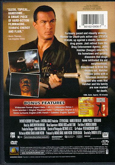 The glowering brutality that is aikido headbanger Steven Seagal's substitute for a star persona at least gives us a rancid taste of authenticity in this cookie-cutter action picture. This glum lug seems to really enjoy hurting people; he snaps limbs and shatters noses with visible relish. Pitted against a crew of Jamaican gangsters who invade his (white ethnic) Chicago neighborhood and threaten his family, retired DEA agent John Hatcher sets out to solve the case with robotic efficiency, kicking butt in just about every scene. Not quite as pudgy in this 1990 outing as he became a few films later, Seagal looks like the genuine, lethal article in the fight sequences, but like a hopeless amateur when he tries to act his way out of the waterlogged-paper-bag of a script. So what else is new? The one bright spot here is Basil Wallace, a mostly unsung actor who throws himself into the showy role of the Rasta gang-boss Screwface, a garishly scarred psycho with piercing ice-blue eyes. --David Chute