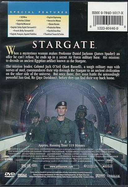 When a mysterious woman makes Professor Daniel Jackson (James Spader) and offer he can't refuse, he ends up in a secret Air Force military base. His mission: to decode an ancient Egyptian artifact known as the Stargate. The mission leader, Colonel Jack O'neil (Kurt Russell), a tough military man with nerves of steel, commandeers their trip through the Stargate to an ancient civilization on the other side of the universe. But once there, they must battle the astoundingly powerful Sun God, Ra (Jaye Davidson), before they can find their way back home.