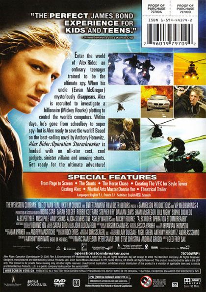 Based on the first of the best-selling series of Alex Rider novels by Anthony Horowitz. Alex Rider (Alex Pettyfer) is a normal school boy, with a normal life. Until his uncle Ian (Ewan McGregor) dies. Alex's life changes forever, as he discovers that his uncle was not, as he thought a banker, but a super MI6 agent who was shot on the way back from his latest assignment. Alex is cleverly manipulated by MI6 to work for them. His mission is to find out what's going on with the Stormbreakers, high tech virtual reality computers that have some kind of virus infecting them. The main suspect is creator of the Stormbreaker, Darrius Sayle (Mickey Rourke). After a shocking discovery, that nearly causes Alex to lose his life, Alex must return to Britan to stop Sayle. Can he succeed or will his first mission become his last?
